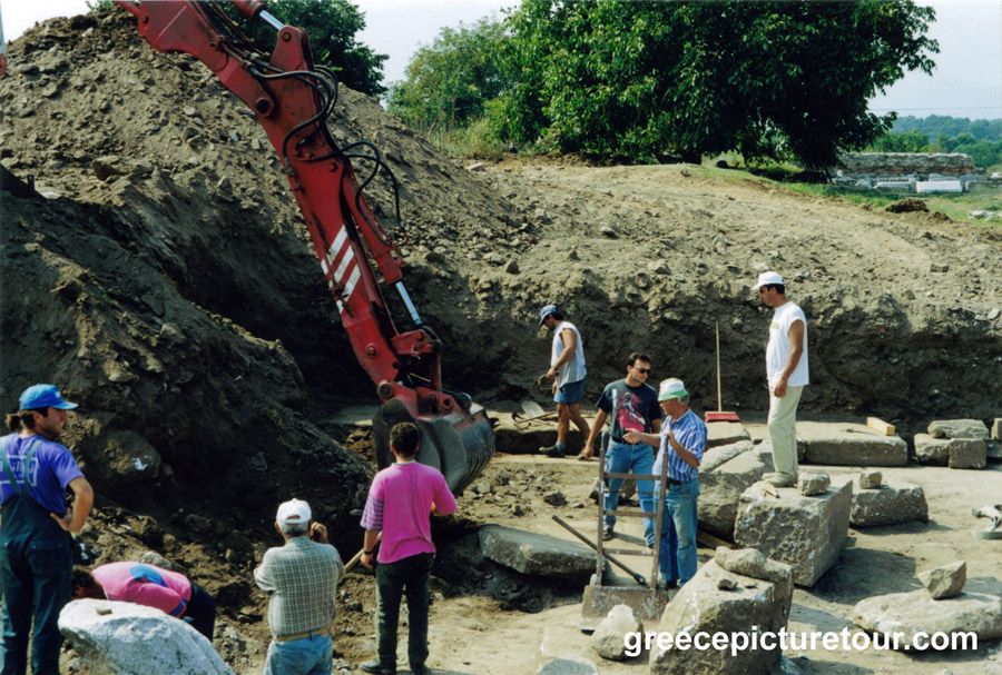 One of the most important archaeological sites in all of Greece can be found in Vergina. Not only is Vergina the site of Macedonia's first capital Aegae, it is also the site of the tomb of Alexander the Great's father King Philip II of Macedon and as well as other royal tombs which is now a museum. The Macedonians used to bury their royalty and nobility in elaborate tombs or monuments. They sort of resemble miniature temples or large mausoleums. You can view an example by clicking on thumbnail of the Tomb of Anthemia. You can see how beautiful this temple is and the importance of funerary rituals for burials during this period in history. The Macedonian tradition was to bury the dead in these elaborate tombs and then cover them with soil for eternity. All you would see would be mounds of earth dotting the landscape.
