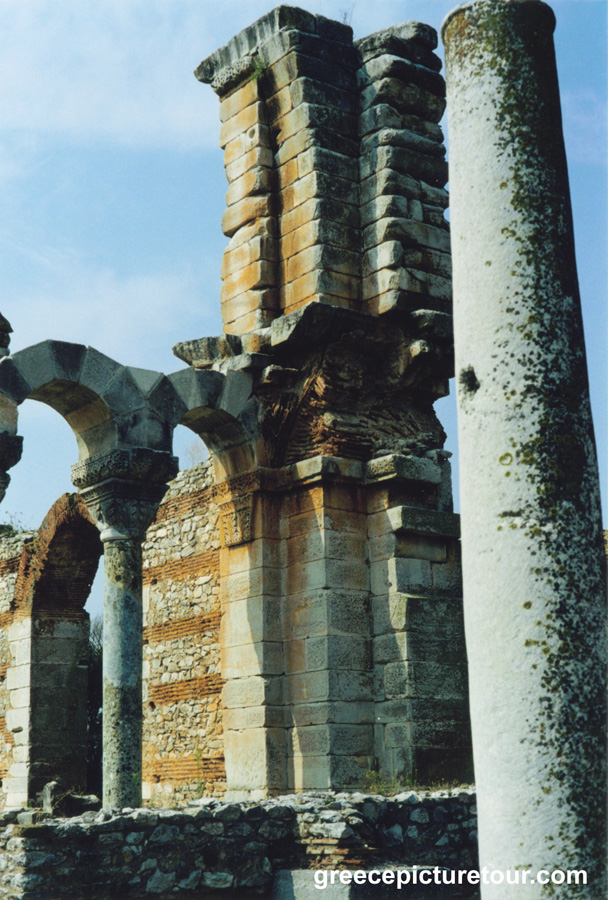 Philippi named after Philip II is historically significant. The fate of the Roman empire was determined here at the Battle of Philippi in 42 BC. St Paul visited here in 49 AD. You can see the prison of St Paul and Philippi was the beginning of his mission in Europe. The ruins consist of Roman buildings, the Roman road Via Egnatia, a theatre and churches. One of these was the first domed church which caved in. It structurally failed soon after it's construction.